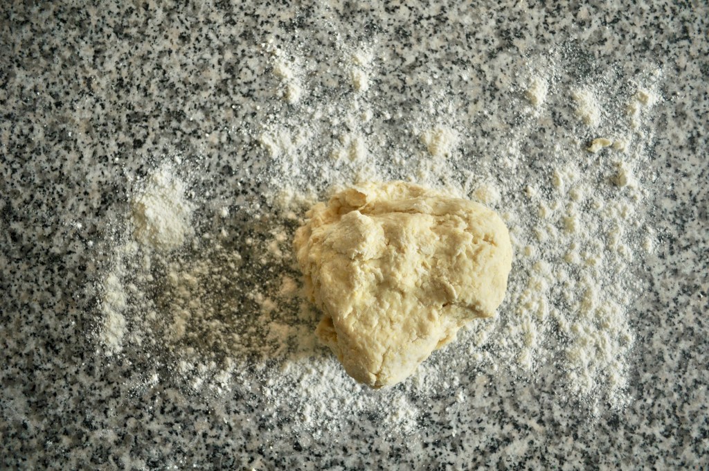 - Once combined, roll out onto a floured surface and knead until dough is no longer sticky.