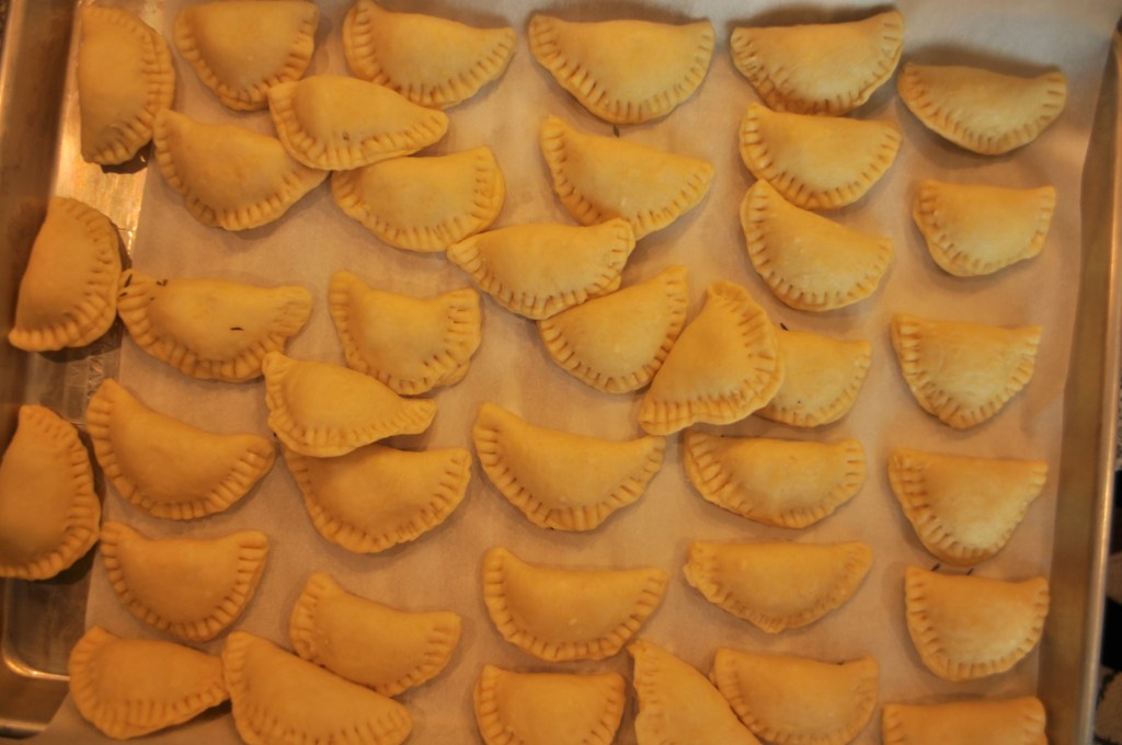 - Coat the edge of the dough with water, fold in half, then “crimp” sealed with a fork