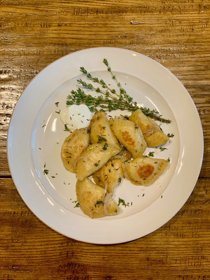 Asiago Pierogi with Shallot Thyme Butter Sauce