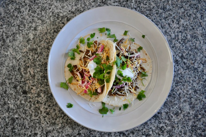 Assemble your tacos using your favorite toppings. I like to set up a taco bar and allow my guests to make their own. Some of my favorite toppings are pickled red onions, jalapeños, shredded cheese, queso, sour cream, cilantro and tomatoes, but you can use whatever you’d like!