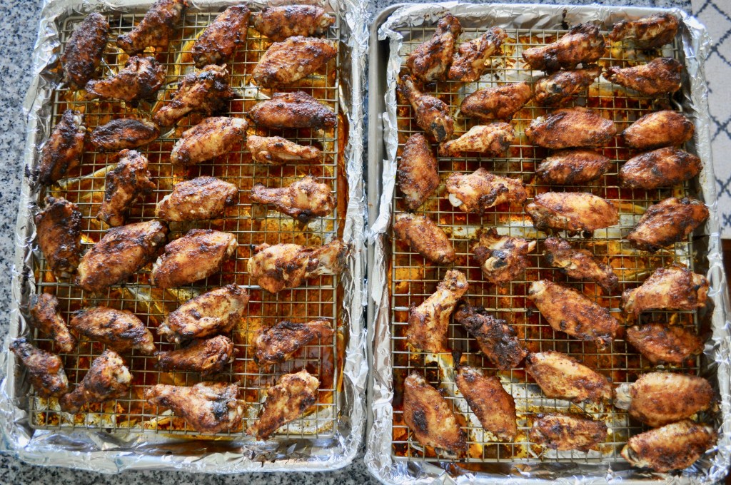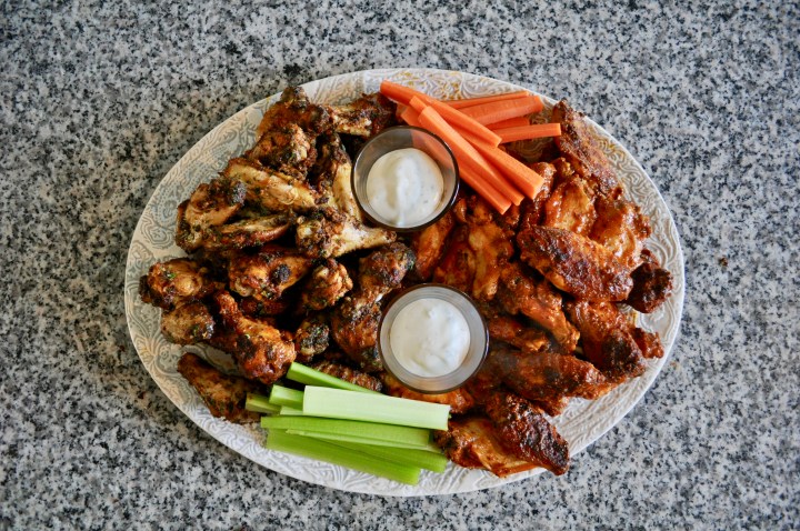My family is from Buffalo, NY, so it’s pretty safe to say that wings are a staple. I spent years deep frying my wings the traditional way, but let’s face it, deep frying makes a hell of a mess, and while I love cooking, I hate cleaning up. However, since I don’t live in Western New York, good wings are hard nearly impossible to come by. After a few years of experimenting to find a cleaner way to make delicious wings at home, I came up with this version. They are still crispy, but are fall-off-the-bone tender, and I have had more than one Buffalo native tell me they are some of the best they have had. And, bonus, I’ve included steps for making these in a smoker if that’s your thing – they turn out just as deliciously crispy with that added smoky/bbq flavor!
