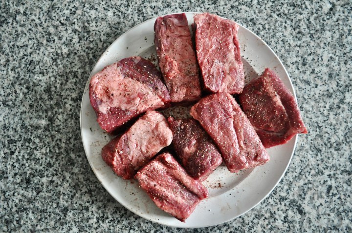 - Pat the short ribs dry with a paper towel and season all sides generously with salt and pepper.