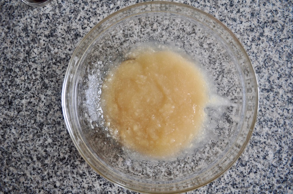 In a large mixing bowl, using a food processor or immersion blender, puree the apple pie filling until smooth.