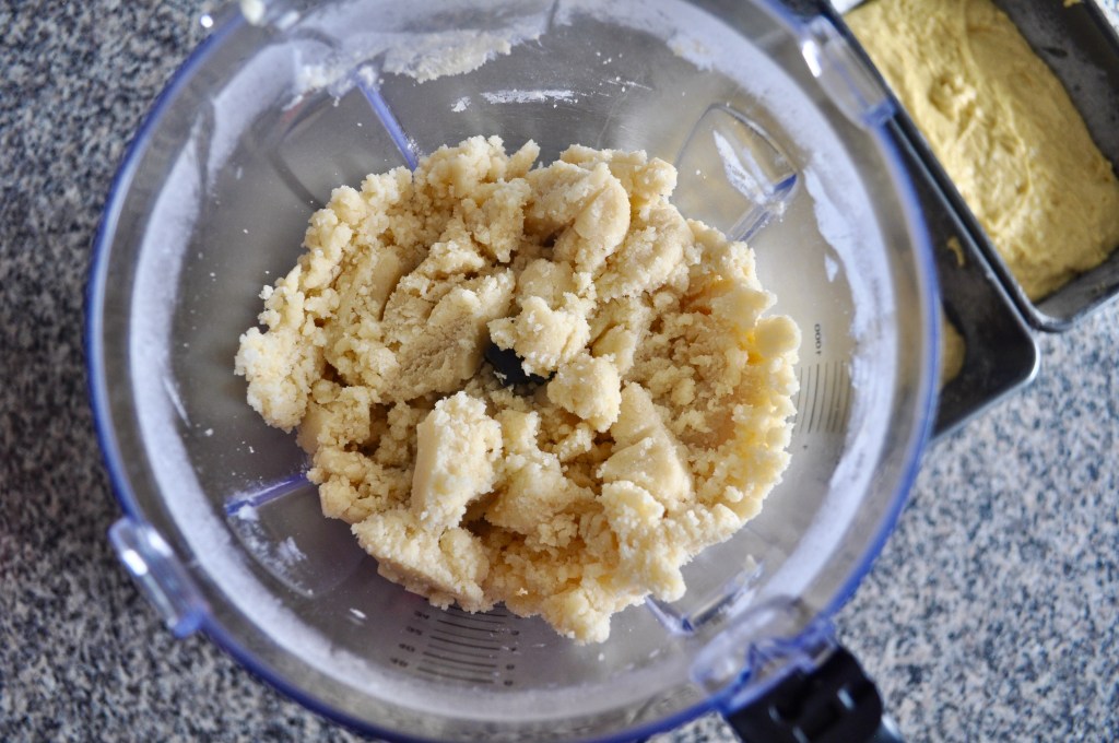- In a food processor, combine the remaining flour, sugar and butter until well blended and crumbs begin to form. The crumbs are the best part, so I recommend doubling these ingredients (this is what I did for this batch and is what you see pictured).