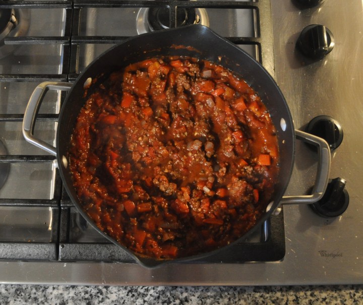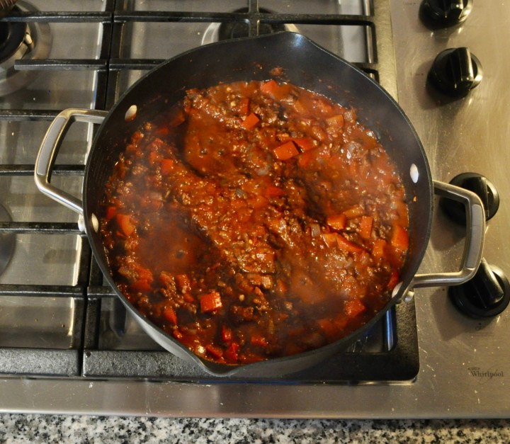 - Heat olive oil in a pot over medium-high heat, then add ground beef and cook until browned and almost cooked through, about 7-10 minutes.